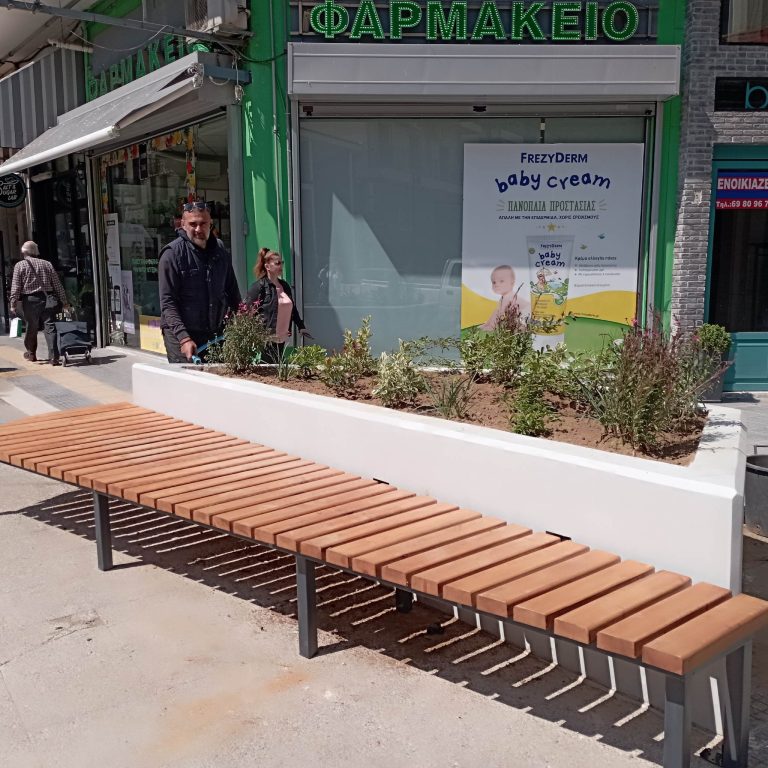 Προμήθεια αστικού εξοπλισμού στην Καρδίτσα με Παγκάκια μεγάλου μήκους, Ποδηλατοστάσια, Κάδους και Κολωνάκια