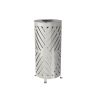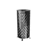 Το συνολικό ύψος του κάδου είναι περίπου 0.90 m και η διάμετρος του 0,40 m. To κυρίως σώμα του κάδου κατασκευάζεται από προγαλβανισμένο χάλυβα πάχους 2mm, ο οποίος επεξεργάζεται με την χρήση τεχνολογίας Laser έτσι ώστε να αποτυπωθεί το μοναδικό σχέδιο που φέρει. To διάκενο μεταξύ των διακοσμητικών εγκοπών του κάδου είναι 15mm. Το καπάκι του κάδου ανοίγει περιστροφικά με μεντεσέ οριζοντιας κίνησης και είναι κατασκευασμένο από ελάσματα πάχους 4 mm. Διαθέτει κλειδαριά κατάλληλη για εξωτερικό χώρο. Η στερέωση στο έδαφος πραγματοποιείται με στριφώνια καθώς ο κάδος έχει κατάλληλη διαμόρφωση με οπές στα πέλματα του. Το προϊόν θα παραδοθεί βαμμένο ηλεκτροστατικά με πολυεστερική πούδρα στην απόχρωση που θα έχει επιλέξει ο πελάτης.