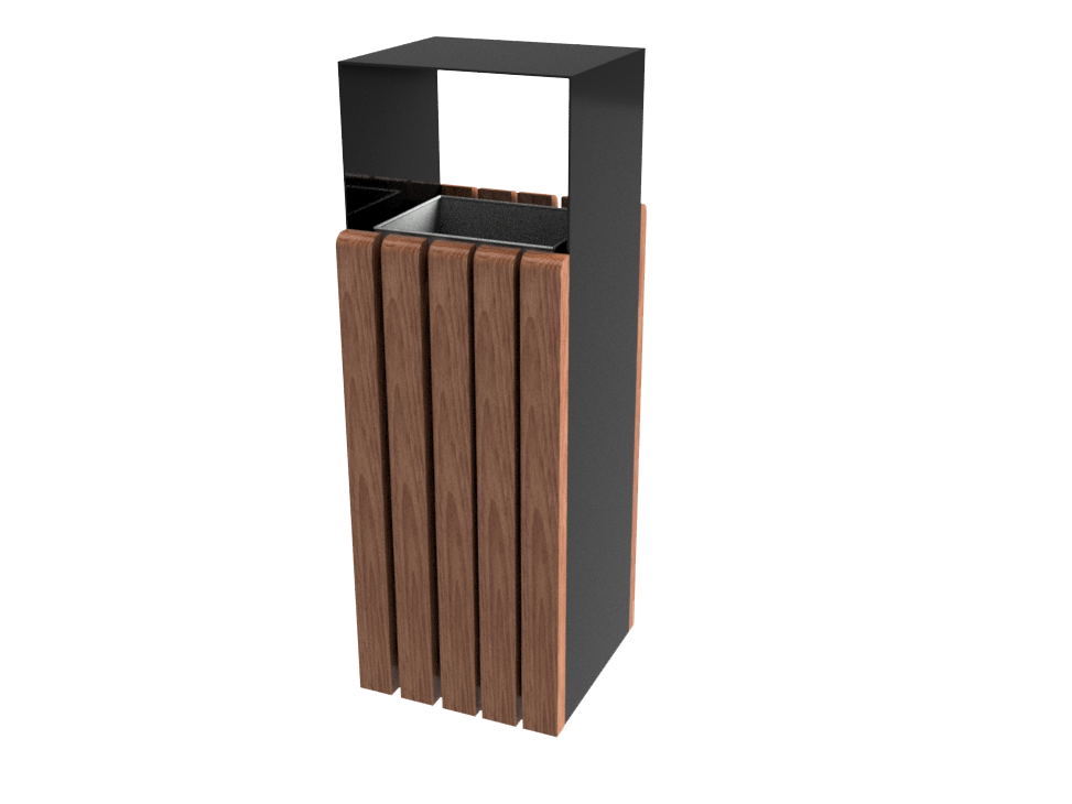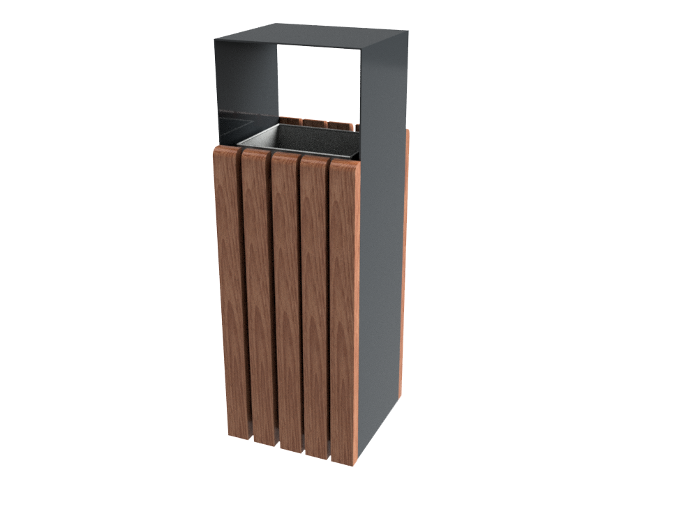 Εσωτερικά του πλαισίου τοποθετείται εσωτερικός κάδος από γαλβανιζέ λαμαρίνα πάχους 0,6 χιλ. διαστάσεων τουλάχιστον 280Χ715Χ210 χιλ. Το δοχείο μπορεί να δεχθεί απλή σακούλα για την τοποθέτηση των απορριμμάτων. Η πόρτα εμπρός του καλαθιού και το πίσω μέρος του πλαισίου του καλαθιού, πρέπει να είναι επενδεδυμένο με ξύλινες σανίδες Σουηδικής Πεύκης κατάλληλων διαστάσεων που στερεώνονται σταθερά επάνω στο πλαίσιο.